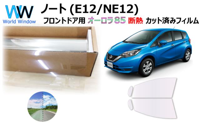 断熱機能付 オーロラフィルム(サイレントタイプ) 透過率85% ニッサン ノート (NOTE) (E12/HE12/NE12) カット済みカーフィルム フロントドアセット