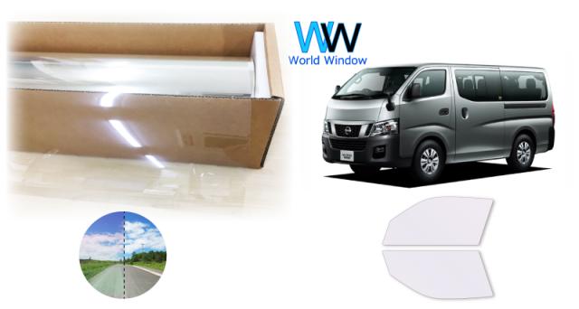 断熱機能付 オーロラフィルム(サイレントタイプ) 透過率85% ニッサン NV350 キャラバン (CW4E26/CS4E26/CW8E26/KS4E26/VW6E26/VR2E26/KS2E26CW4E26/DS4E26/DW4E26/DS8E26) カット済みカーフィルム フロントドアセット