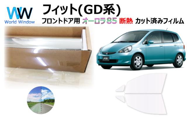断熱機能付 オーロラフィルム(サイレントタイプ) 透過率85% ホンダ フィット GD1/GD2/GD3/GD4 カット済みカーフィルム フロントドアセット