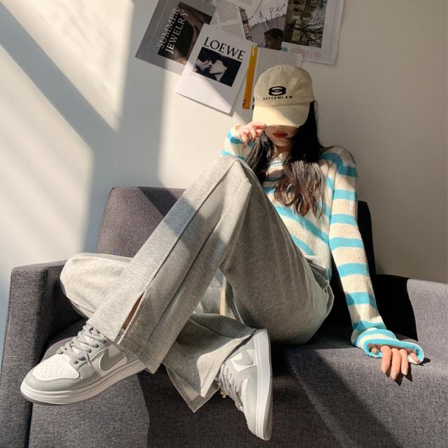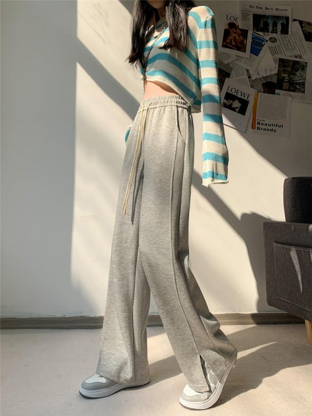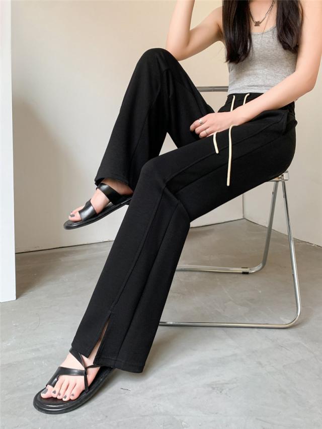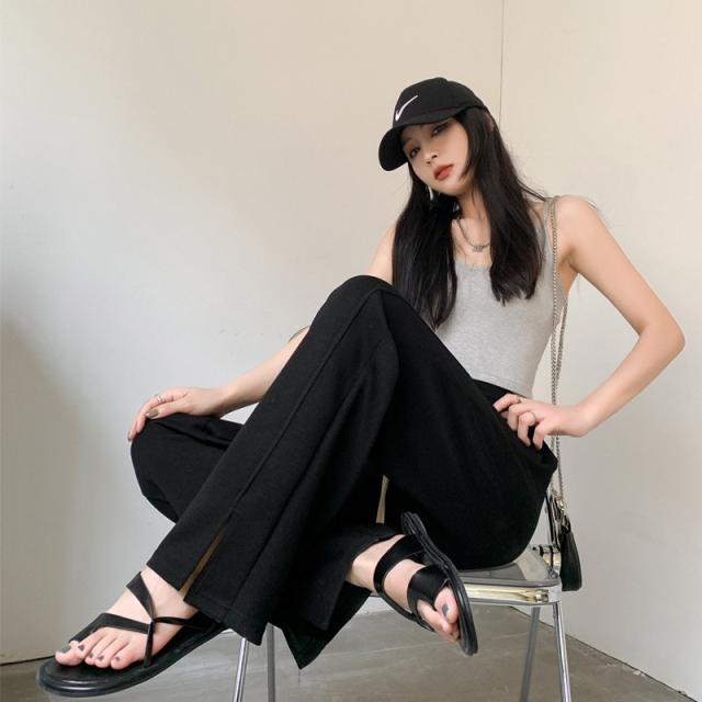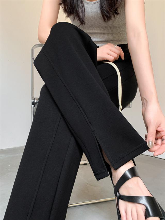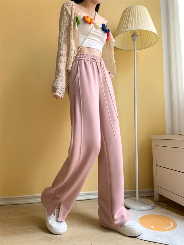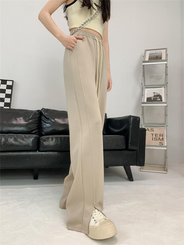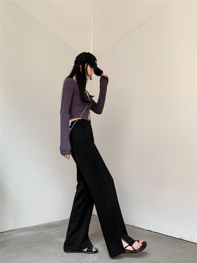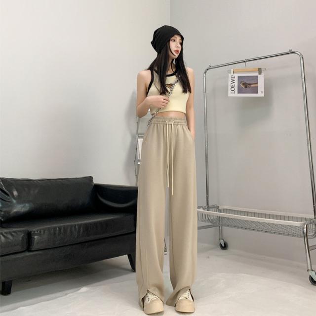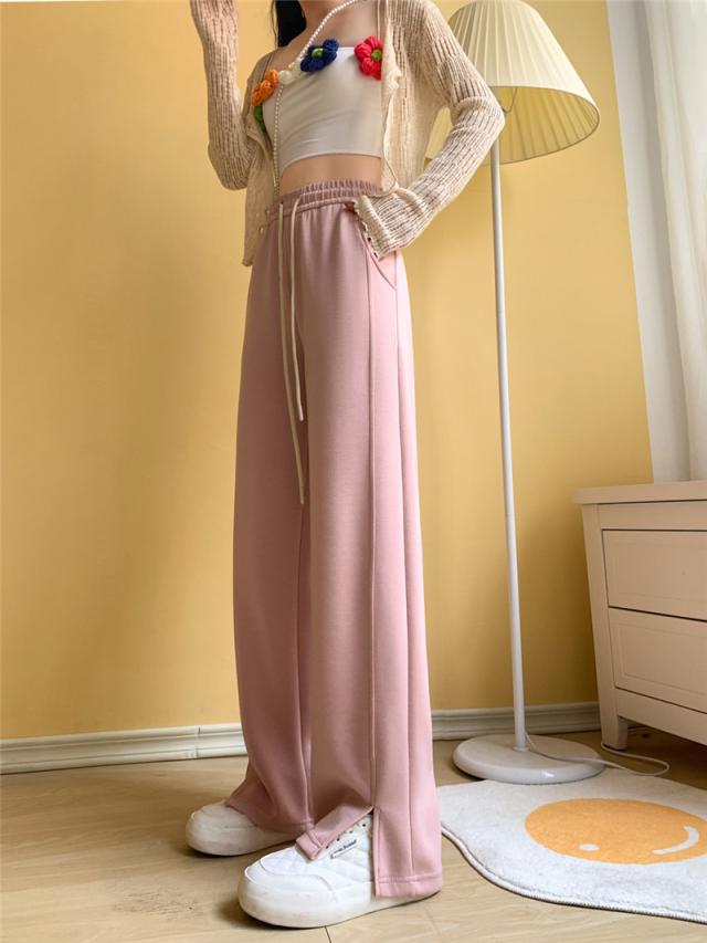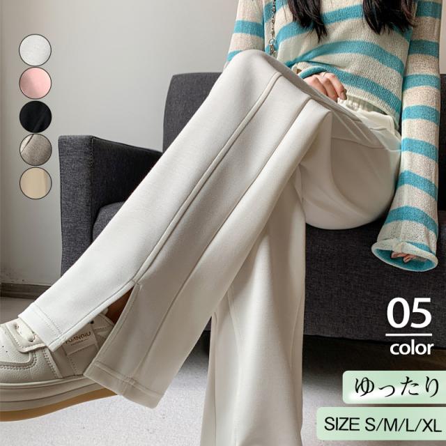 ワイドパンツ レディース ロング 無地 ボトムス ズボン スリット ハイウエスト ガウチョパンツ カジュアル ゆったり 着痩せ 通