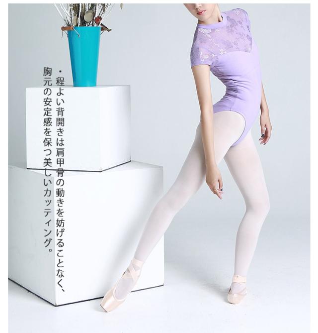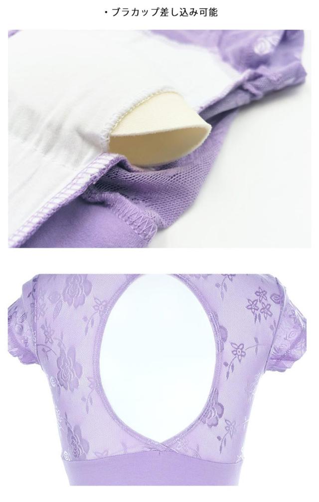 ホルターネック レディース 花柄レース 切り替え レオタード スカートなし フレンチスリーブ バレエ 背中空き パッド入り レッスン着 取り外し可能のパッド付き 大人 手洗いOK 新体操