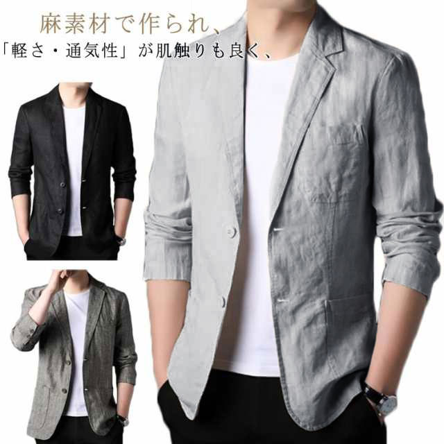テーラードジャケット 紳士服 テーラード 綿麻 麻混 テーラードジャケット ジャケット 春 アウター リネンテーラードジャケット 長袖 メンズ 細身 ビジネス リネンジャケット メンズブレザー カジュアルジャケット 二つボタン サマージャケット 無地 カーディガン 夏