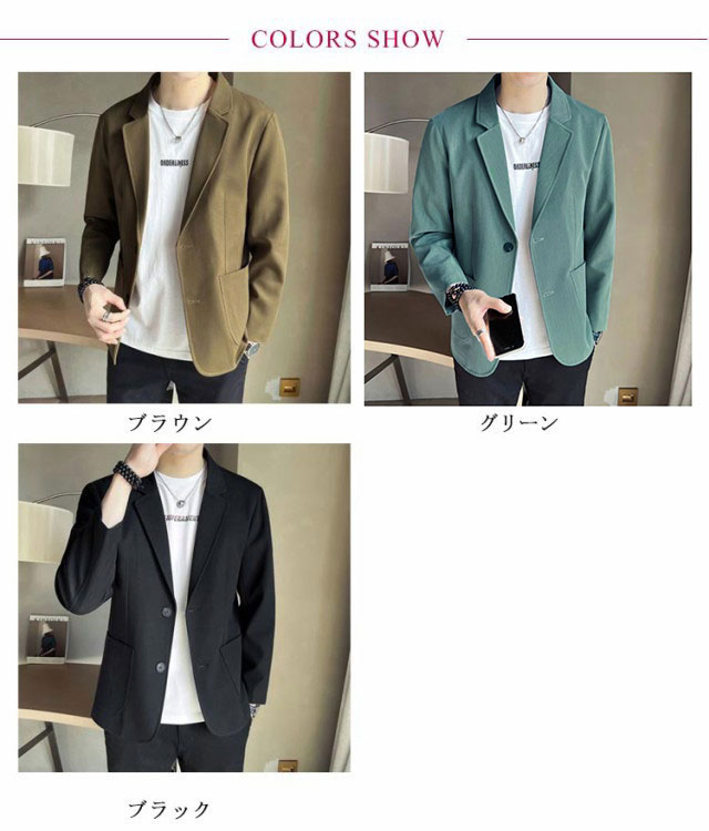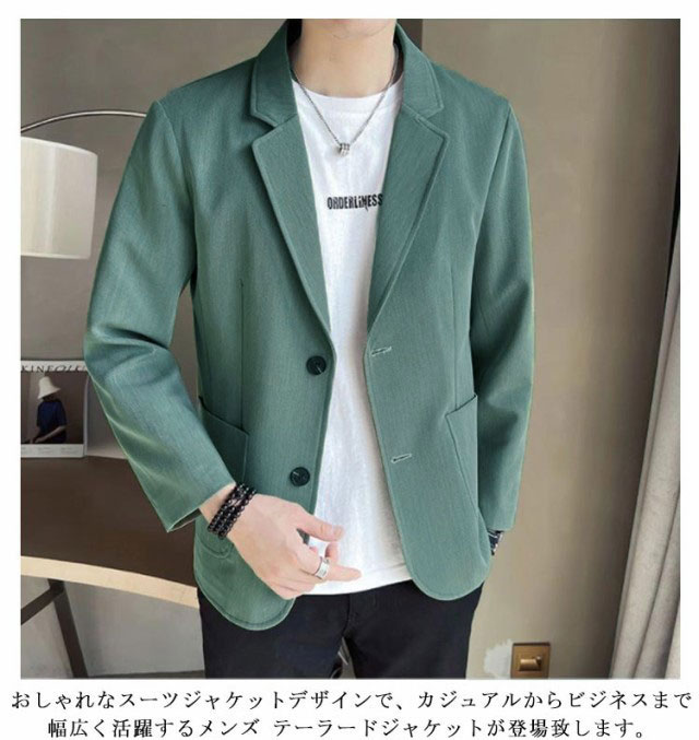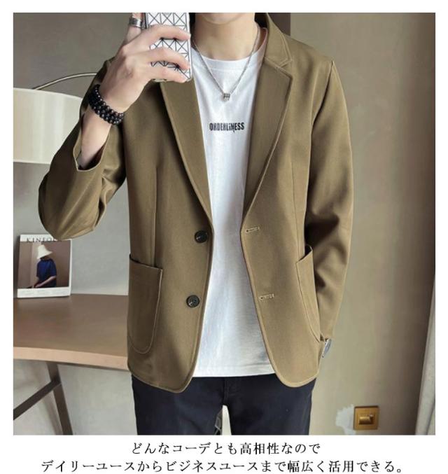 | スリムなシルエットで、 窮屈さを感じさせない快適な着心地を実現するメンズビジネスジャケットです。 大人の求めるカジュアル感もフォーマル感もこれを羽織るだけで実現可能。どんなコーデとも高相性なのでデイリーユースからビジネスユースまで幅広く活用できる。 おしゃれなスーツジャケットデザインで、カジュアルからビジネスまで幅広く活躍するメンズ テーラードジャケットが登場致します。 シンプルな無地だけど、細部までこだわりましてファッション感が満点で、さらっと羽織るだけで男らしさを演出してくれるメンズスリムジャケットです! | |