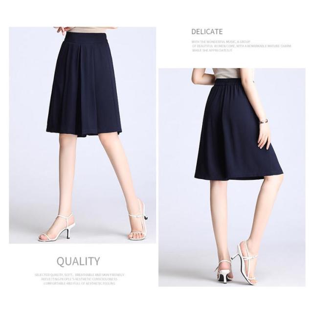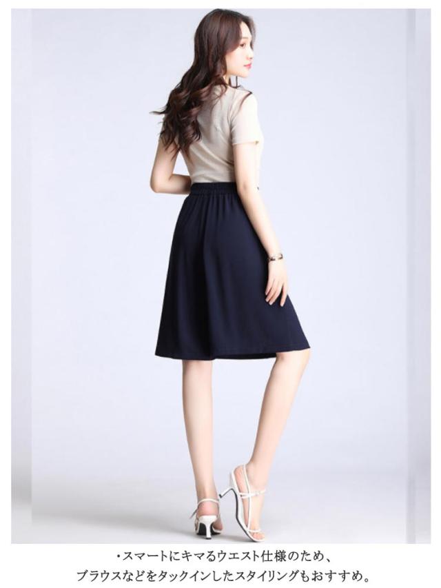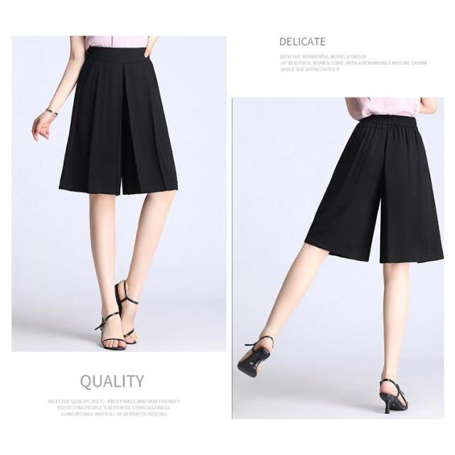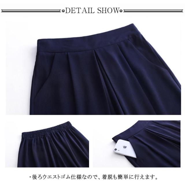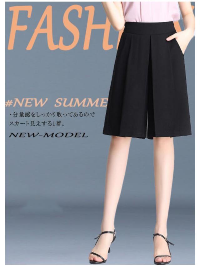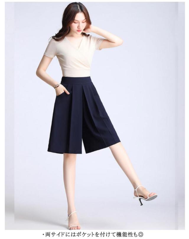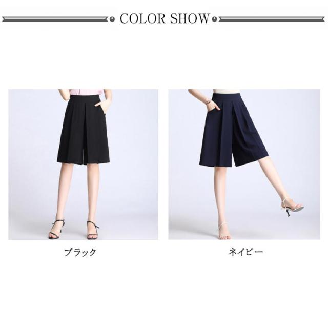 レディース ワイドパンツ 膝丈 ハーフパンツ ショートパンツ ウェストバックゴム シフォン素材 夏 ポケット付き 無地 キュロット