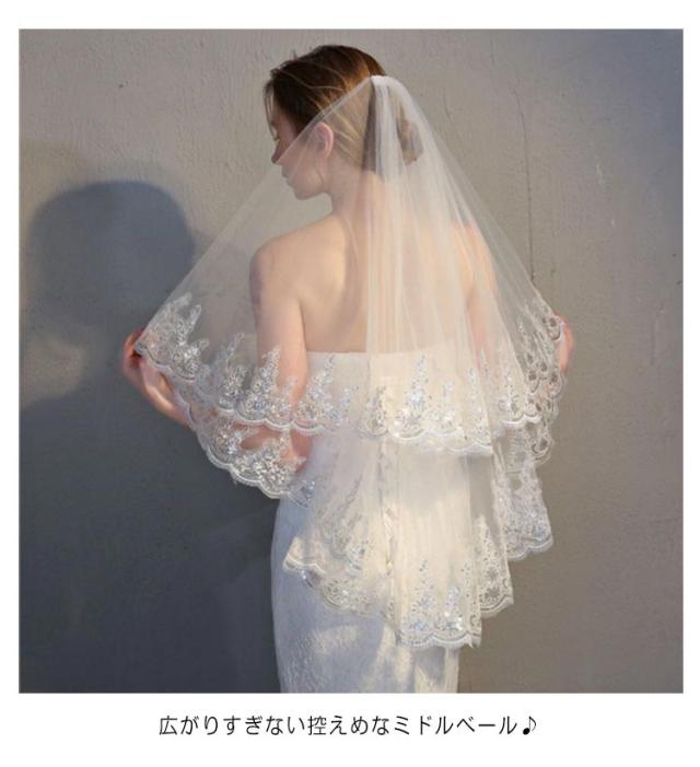 挙式 送料無料 ウエディングベール 二次会 結婚式 ベール 2層 花嫁 パーティー ミドル ミドルベール ウエディング エレガント ブライダル ベールダウン ベールアップ レースー フェイスアップベール 前撮り 披露宴