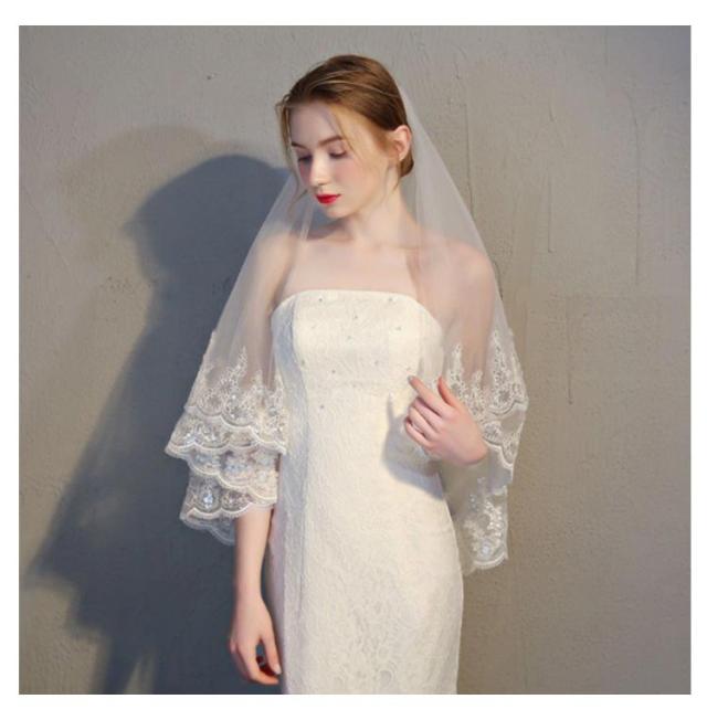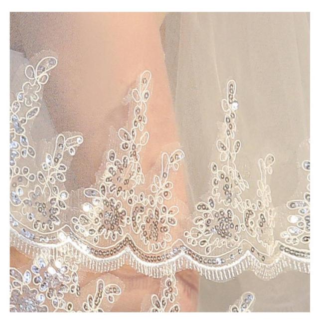 | ベールUP儀式可能♪2層ウエディングベール 広がりすぎない控えめなミドルベール♪ 刺繍模様がしっかりと存在感を出す | |