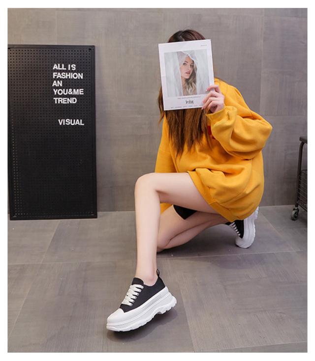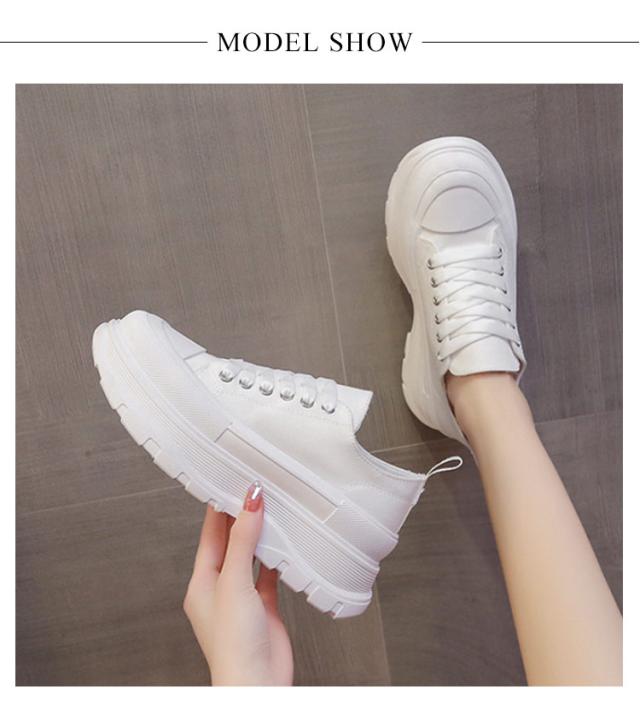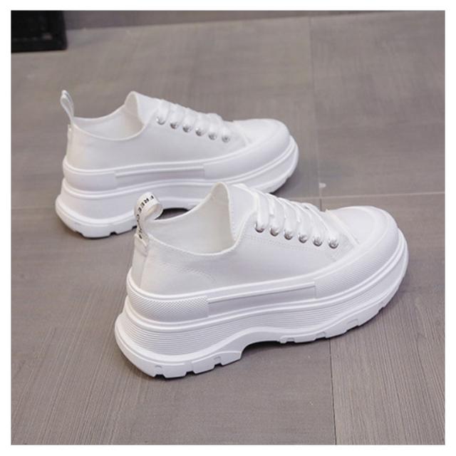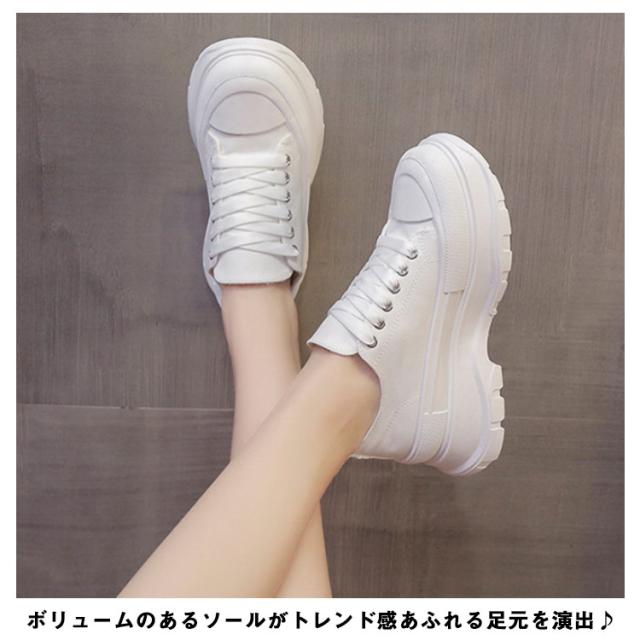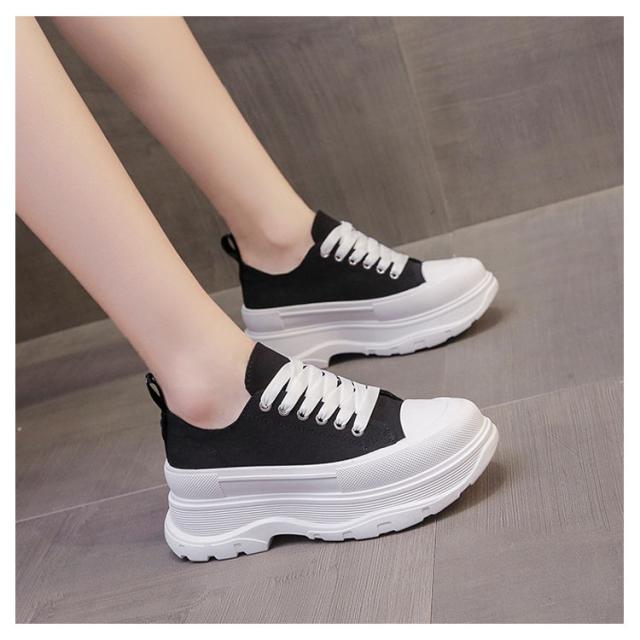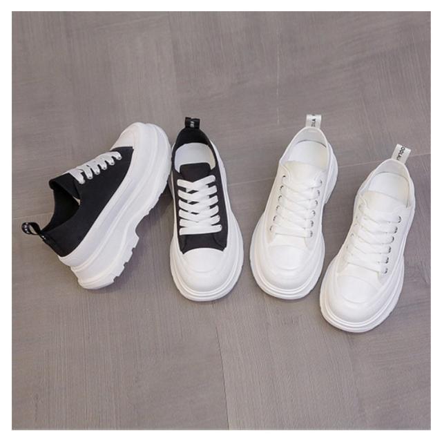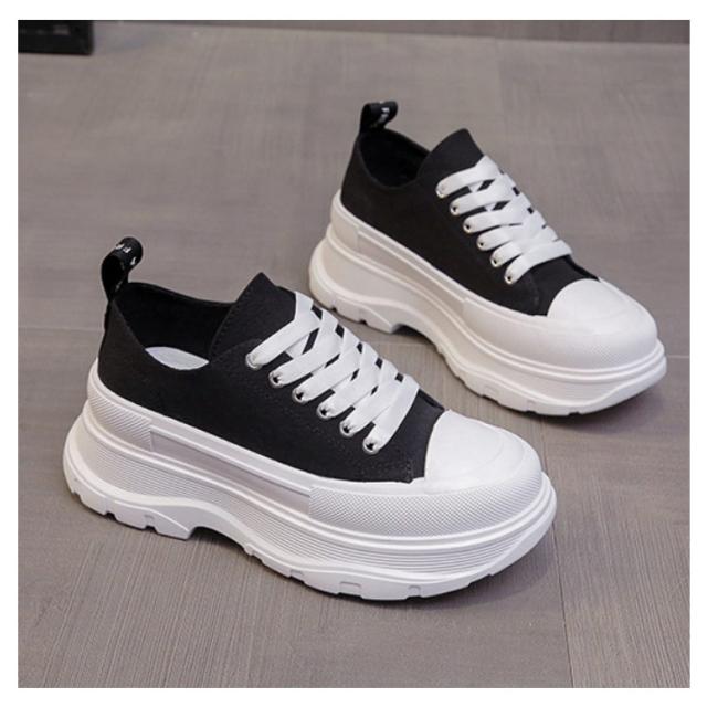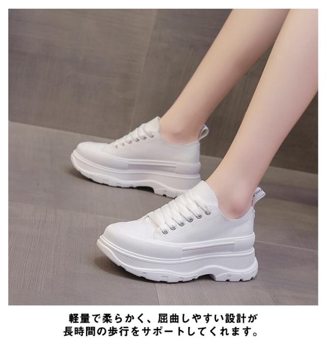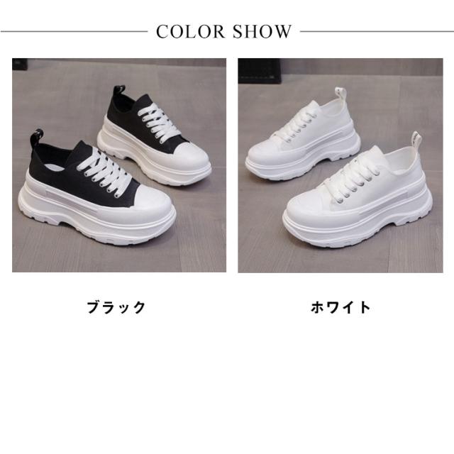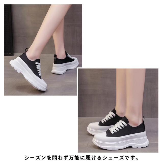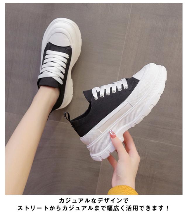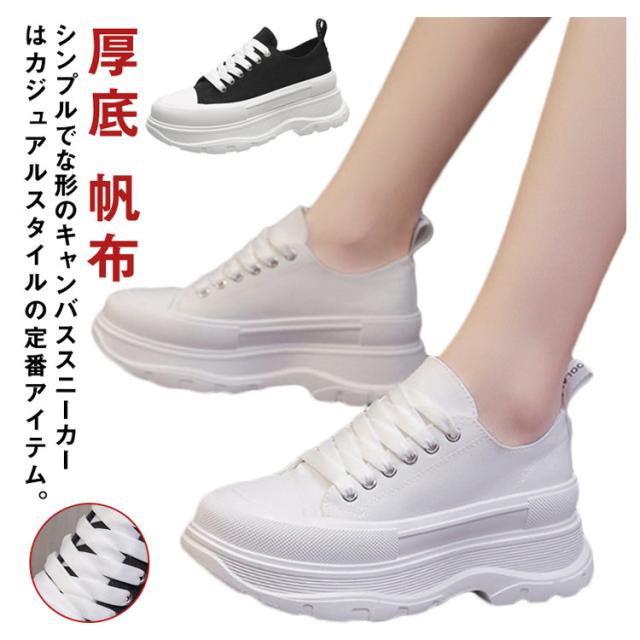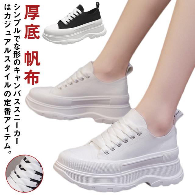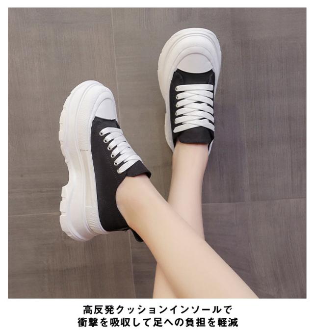 厚底スニーカー レディース 靴 厚底 キャンバス スニーカー 帆布 春 秋 痛くない コンフォートシューズ 身長アップ 背伸び 歩きやすい 疲れない 大きいサイズ ブラック 黒 ホワイト 白 無地 春夏 秋冬 カジュアルシューズ
