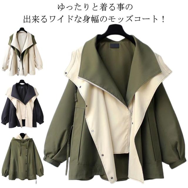 モッズコート マウンテンパーカー アウター レディース 春コート モッズジャケット ブルゾン フード付き オーバーサイズ 体型カバー 羽織り 春秋 20代 30代 40代 フェイクレイヤード アウトドア カジュアル M L XL 2XL 3XL