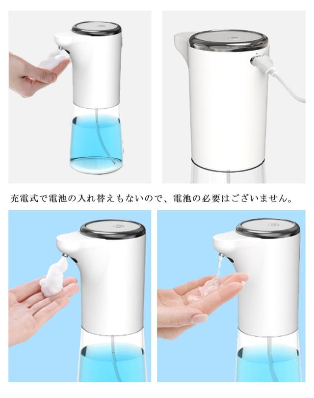 非接触 電動ソープディスペンサー 充電式 泡 オートソープディスペンサー 液体 ソープディスペンサー usb おしゃれ 高感度センサー搭載 ハンドソープ ディスペンサー usb 洗剤 キッチン 消毒 自動