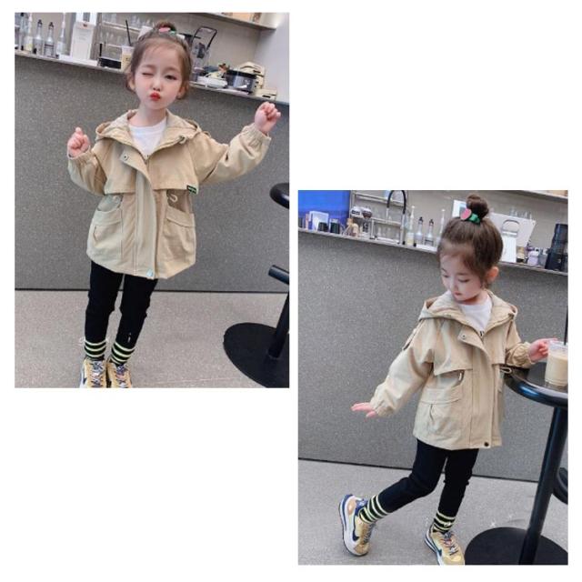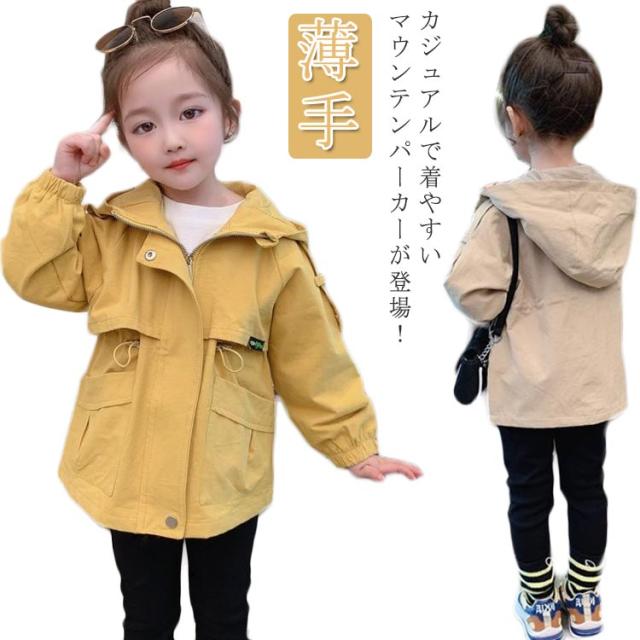 ウインドブレーカー キッズ 女の子 アウター 子供 140 防風 トレンチコート ジャケット 上着 140 秋 春 薄手 トップス 子供服 フード付き お洒落 90 ジャケット マウンテンパーカー ベージュ ジュニア 100 110 120 130 ジップアップ