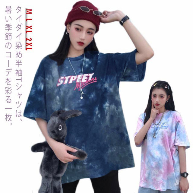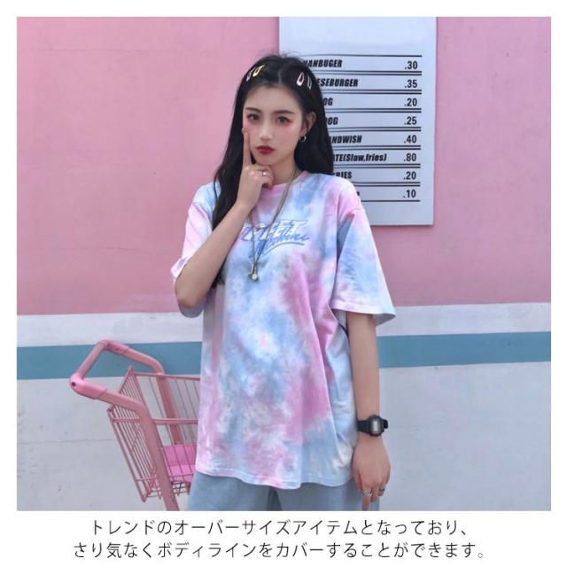 Tシャツ カットソー 春 トップス 染め ティーシャツ 半袖 レディース トップス クルーネック 夏服 夏 メンズ ペア Tシャツ タイダイ染 ゆったり ビッグシルエット 大きいサイズ タイダイ
