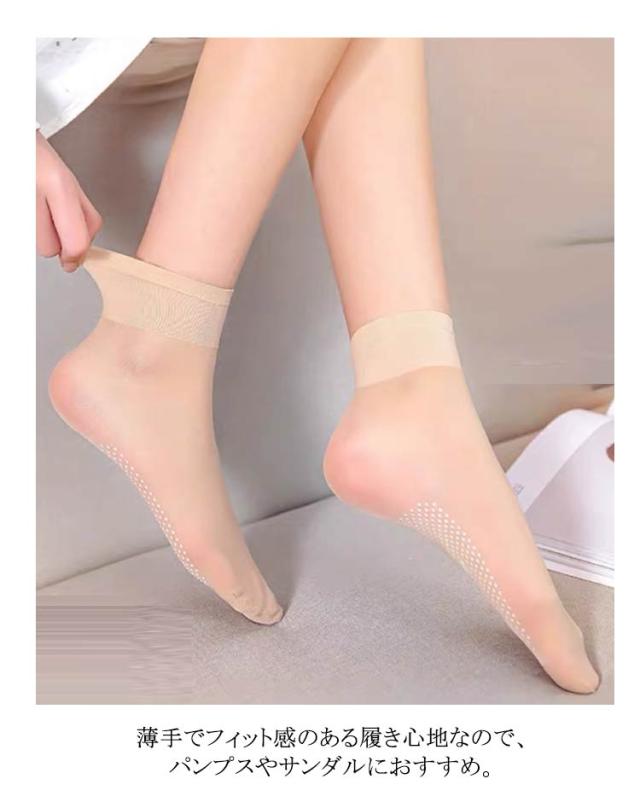 10足セット 滑り止め加工 ストーキングソックス ショートソックス レディース 靴下 透け感 夏用 薄手 送料無料 ナイロンソックス シースルー くるぶし丈 伝線しにくい パンプス サンダル ずり落ちにくい