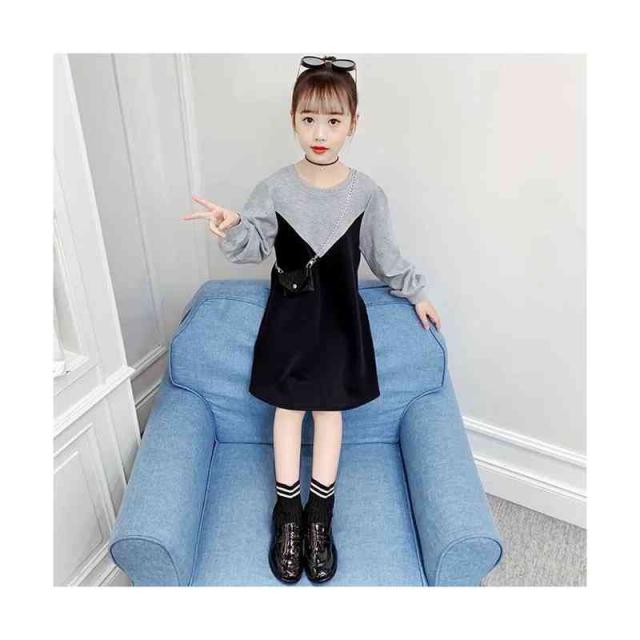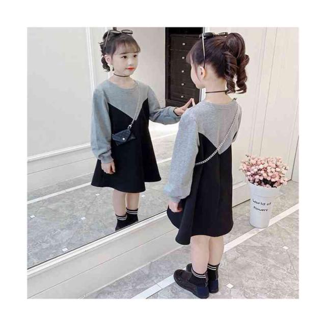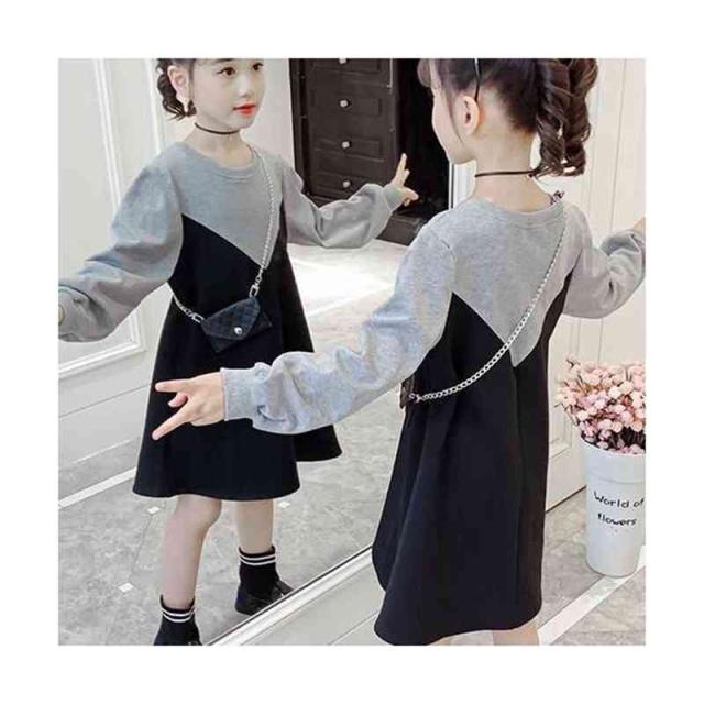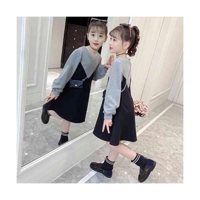 丸襟ワンピース キッズ 切り替え 春秋 ロングワンピース おでかけ 長袖 トレーナーワンピース おしゃれワンピース フォーマルワンピース 送料無料 無地 シンプル カジュアル おしゃれ ゆったり