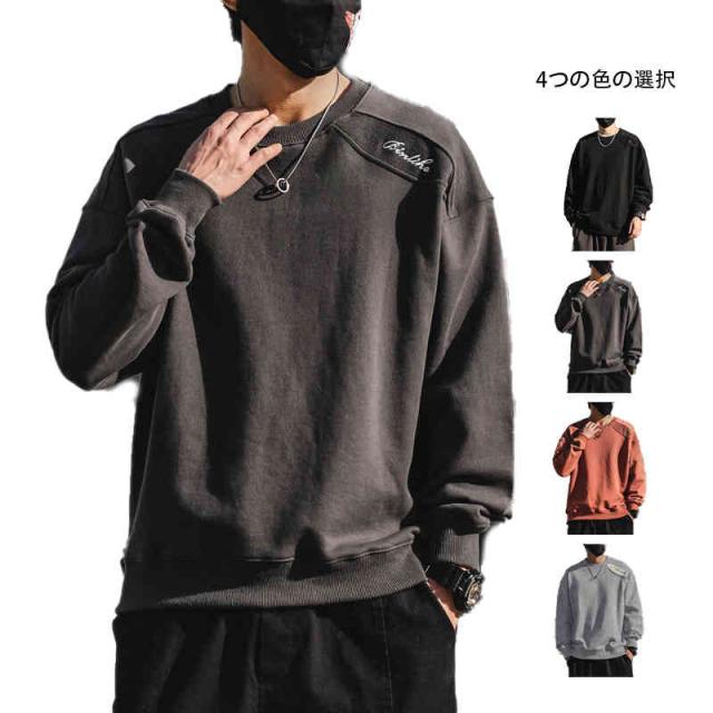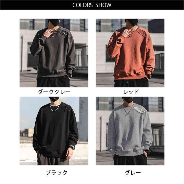 無地 スウェット 長袖 部屋着 上ルームウェア メンズ 大きい 大きいサイズ 部屋着 綿 ダークグレー レッド ブラック トップス春