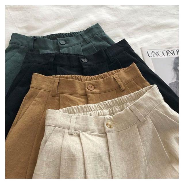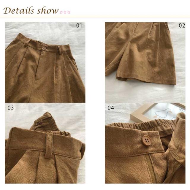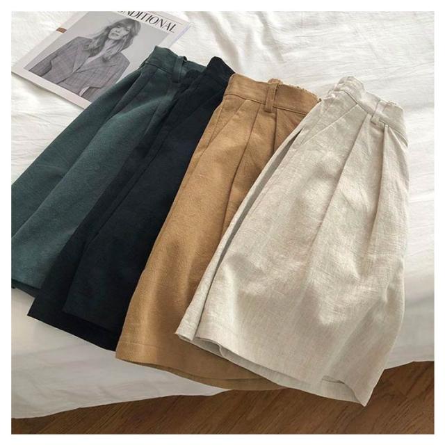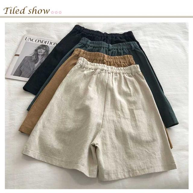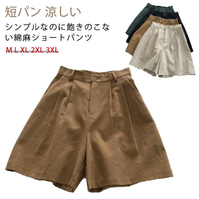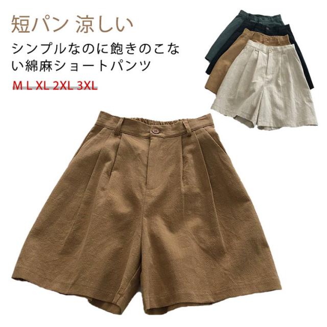 綿麻ショートパンツ レディース 短パン ハーフパンツ Aライン 夏 涼しい 快適 爽やか ワイドシルエット ボトムス ショートパンツ 麻 体型カバー シンプル 無地 ウエストゴム 脚長 着痩せ おしゃれ カジュアル 大きいサイズ プレゼント 送料無料