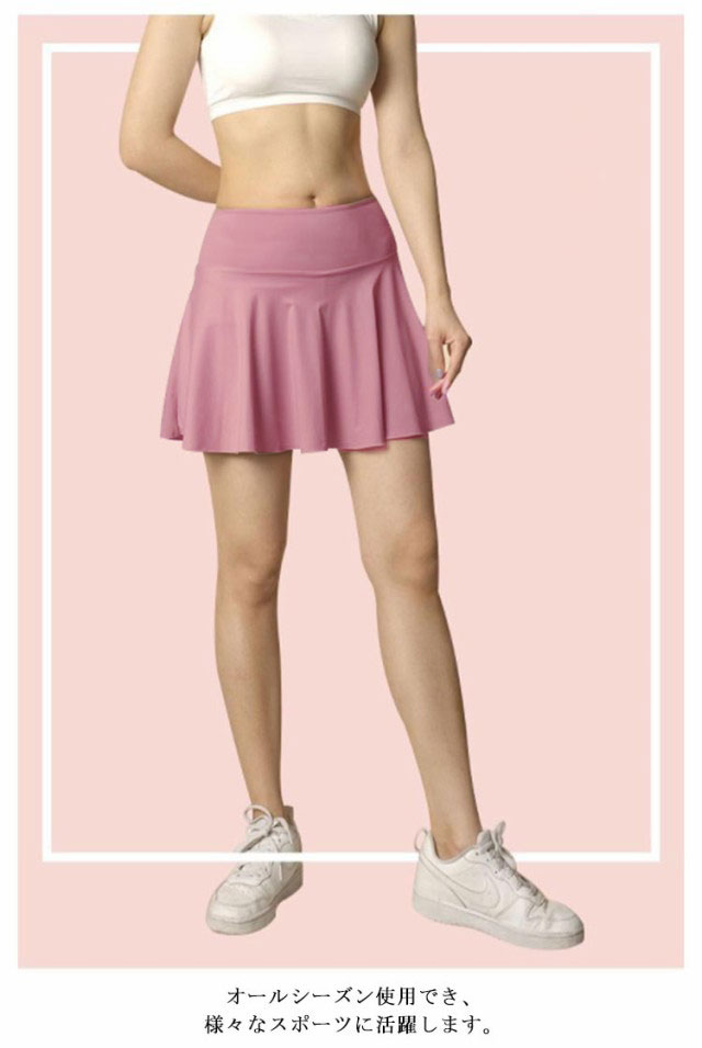 | ・レディース用運動用スカート。 ・インナーパンツ一体型デザインで風の強い日も安心。 ・着心地のいい柔らかくストレッチの効いた素材で動きやすく快適です。 ・インナーショーツにサイドポケット付き ・オールシーズン使用でき、様々なスポーツに活躍します。 | |
