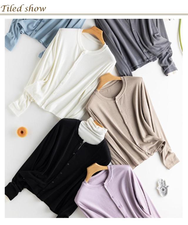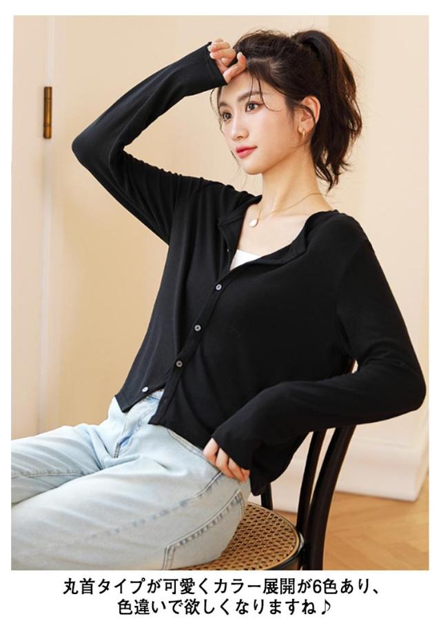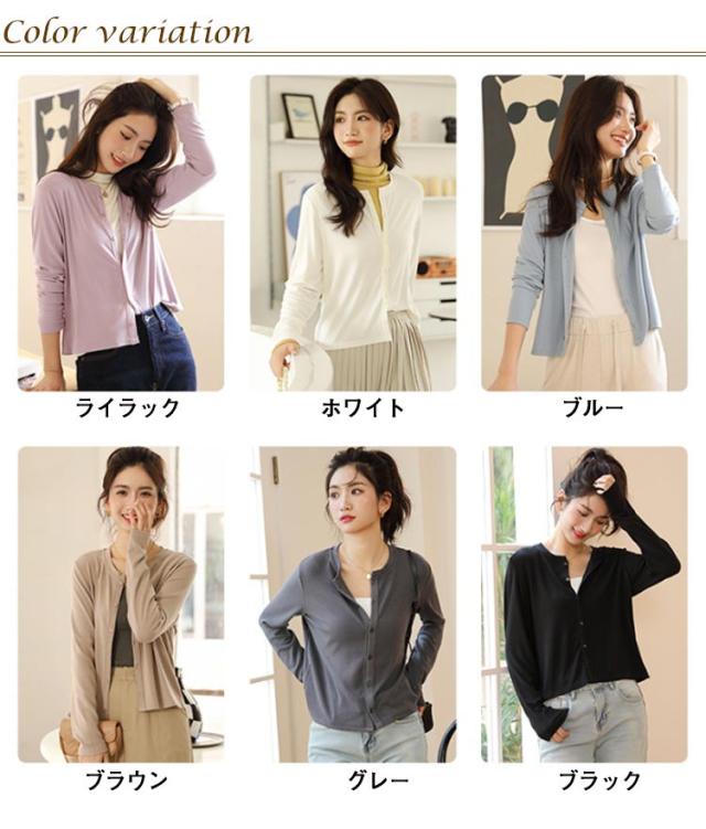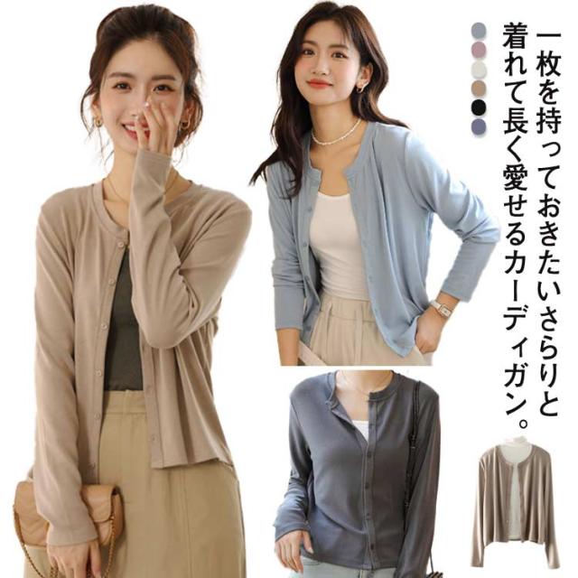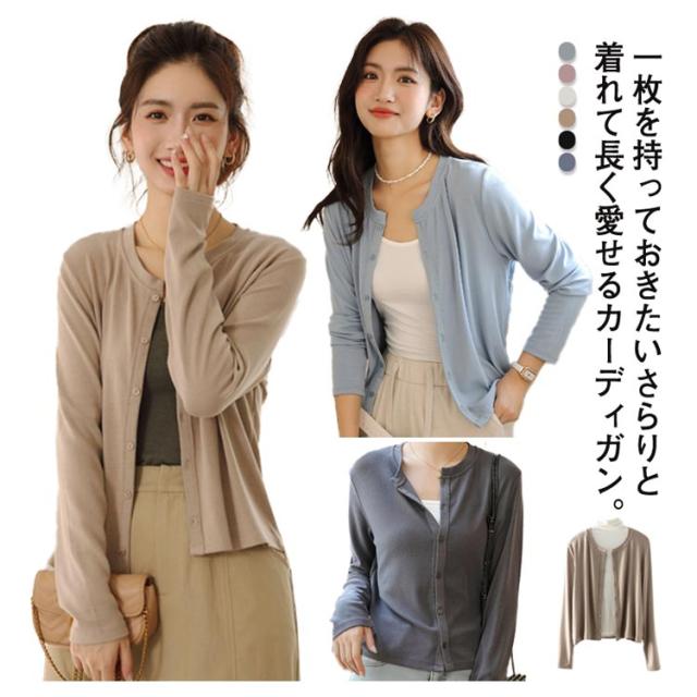 送料無料 カーディガン 薄手 春夏 レディース クルーネック 丸首 サマーカーディガン 長袖 前開き トップス 羽織り カーデ 上着 プルオーバー 無地 カジュアル オシャレ かわいい UV 紫外線 冷房 日焼け 対策 オフィス 通勤 学生
