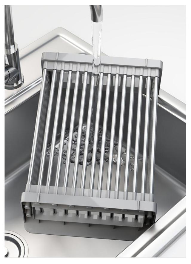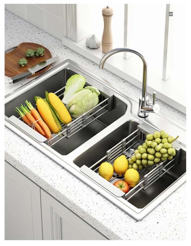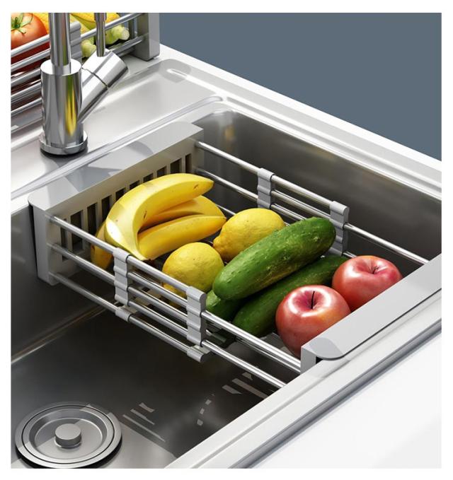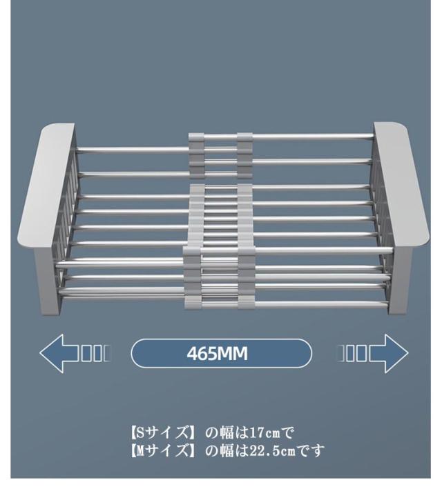 | 伸縮式でシンクにフィットする水切りバスケット。【Sサイズ】+【Mサイズ】の2個セット。 シンクのサイズに合わせて約28.5cmから46.5cmまでフレキシブルに対応。 【Sサイズ】の幅は17cmで、【Mサイズ】の幅は22.5cmです。 グラスやカップ、茶碗にカトラリーなど、食器類から調理用具まで入ります。水は直接シンクに落ちるので、トレーも不要でいつでも清潔。 ワイヤーはステンレス製なので、サビにくく、洗った食器をサッと水切りできて、お手入れが簡単です。 | |