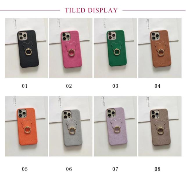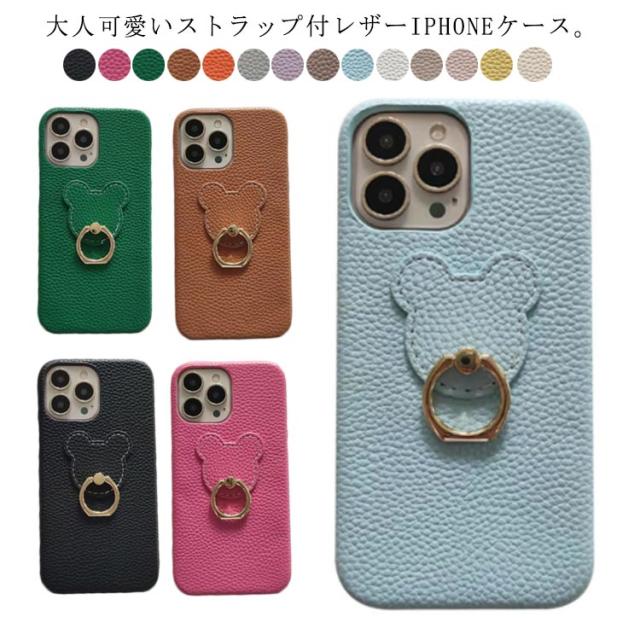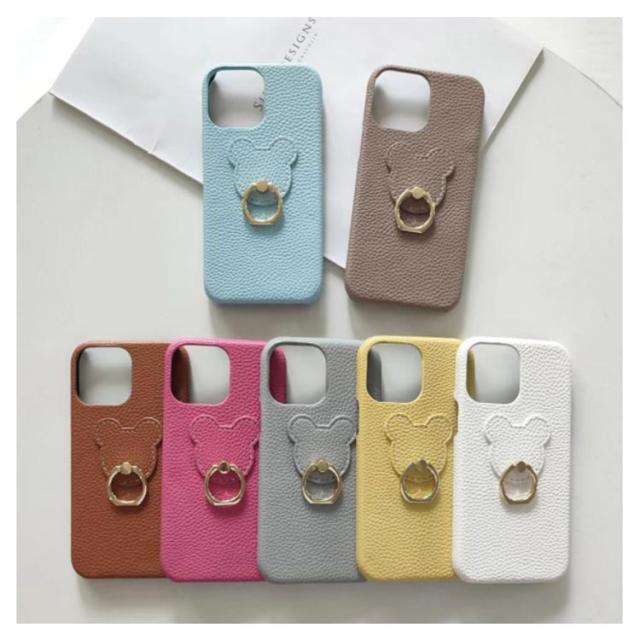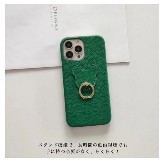 iPhone14Plus iPhone14Promax ケース リング iPhone14Pro 全14色 iPhone13 iPhone13mini iPhone12 iPhone11 韓国 iPhone11Pro iPhone14 iPhone12Pro pu レザー iPhone12Mini スタンド 熊柄 クマ iPhone13Pro