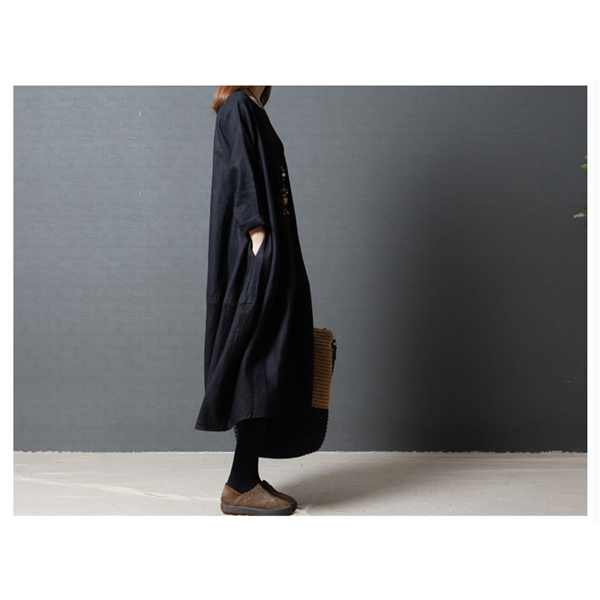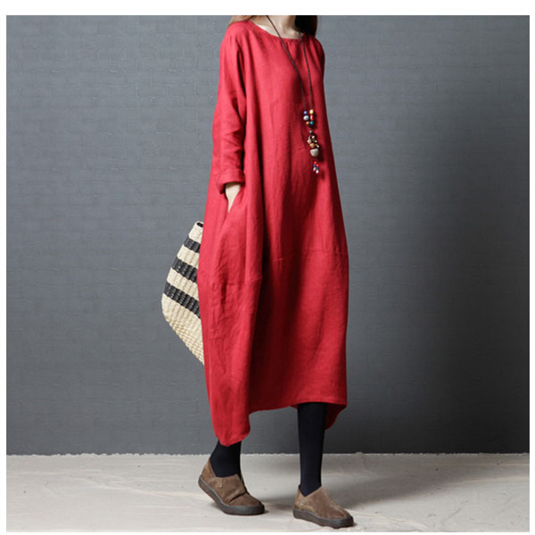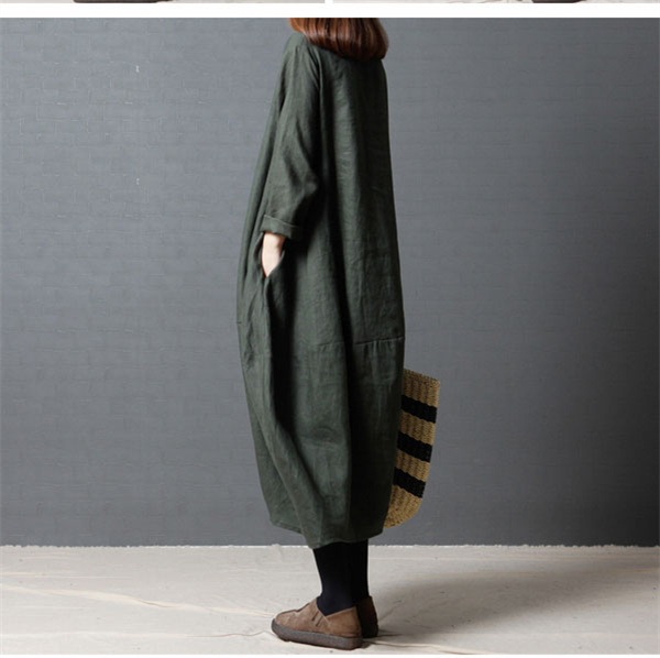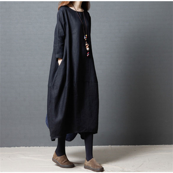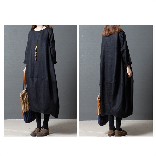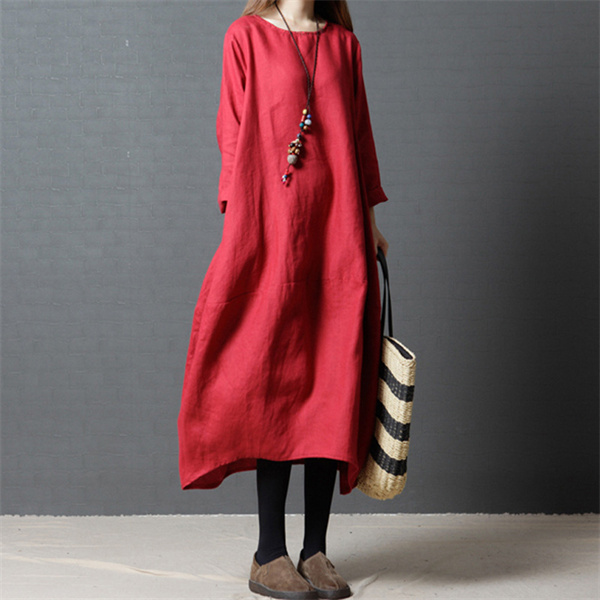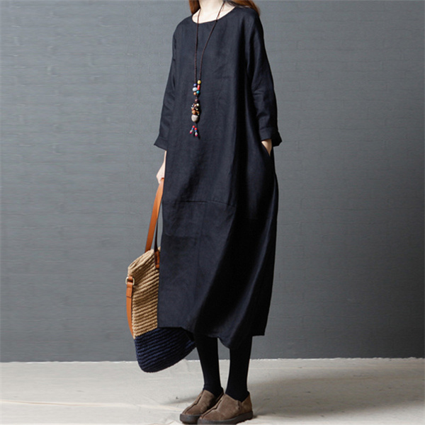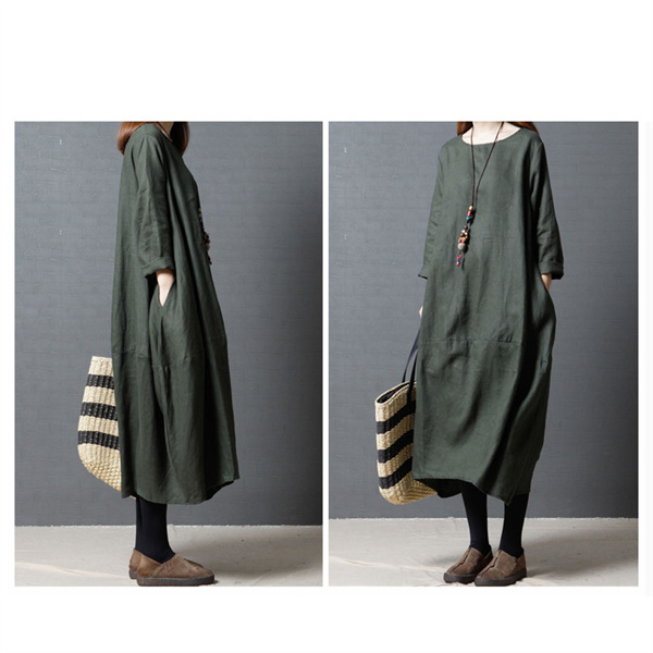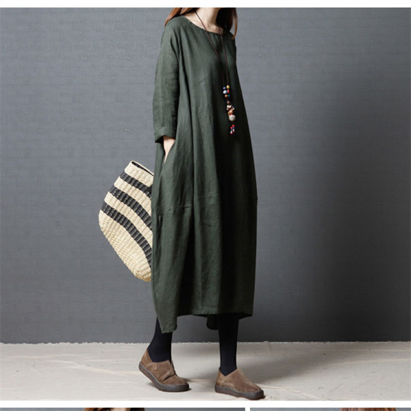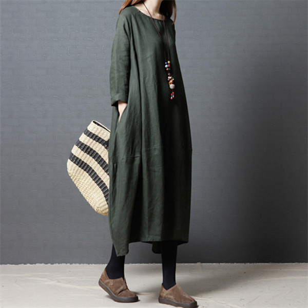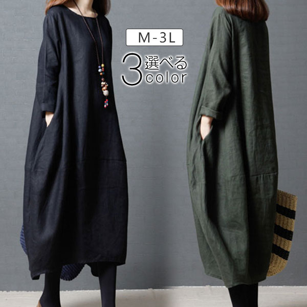 ポイント超超祭 リネンワンピース 麻ワンピース レディース 40代 ロング丈 大きいサイズ 長袖 マキシワンピース 綿 ゆったり 体型カバー カジュアル 春 きれいめ