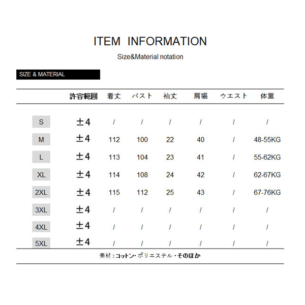 サイズ:/S/M/L/XL/2XL
