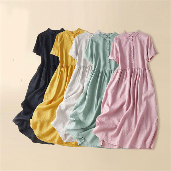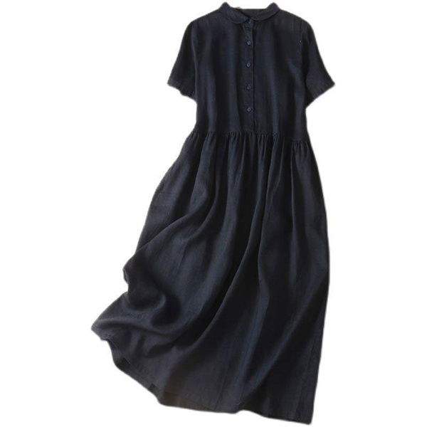 ポイント超超祭 ワンピース ロング丈 シャツワンピース 綿麻混 リネンワンピース 麻ワンピース シャツ カジュアル 大きいサイズ ゆった 体型カバー ゆったり