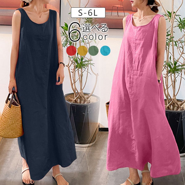 ポイント超超祭 春新作 麻ワンピース 春 レディース 大きいサイズ S-5XL オフィス ノースリーブ チュニック 体型カーバー 上品 ゆったり きれいめ