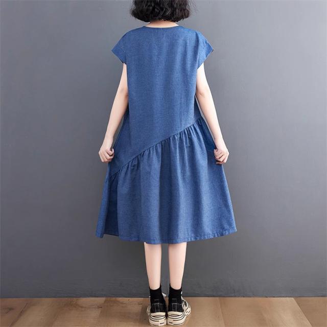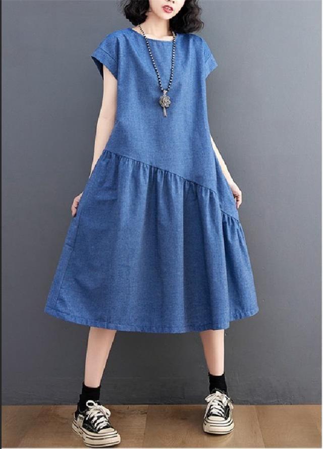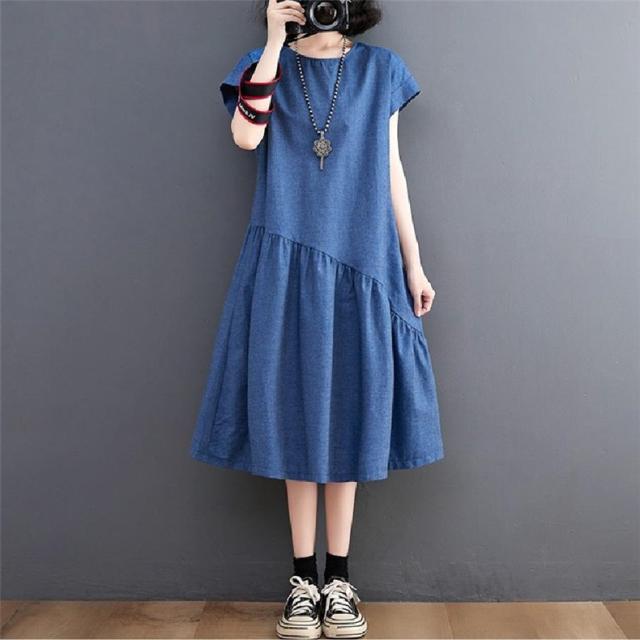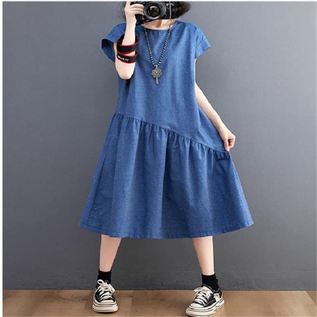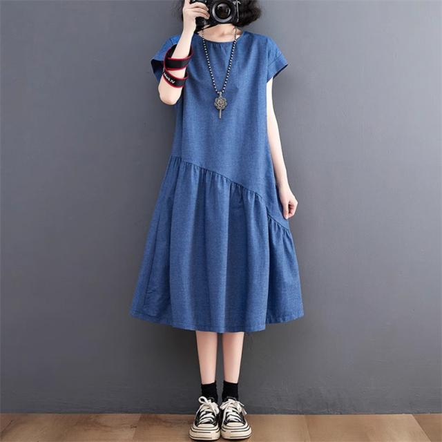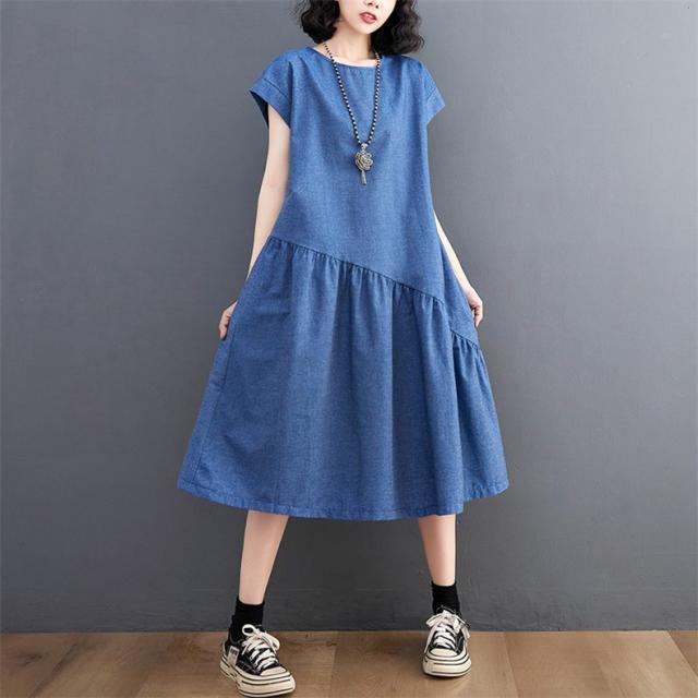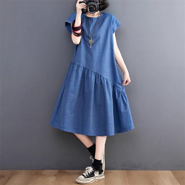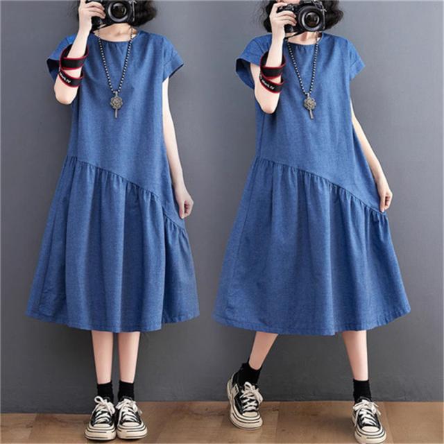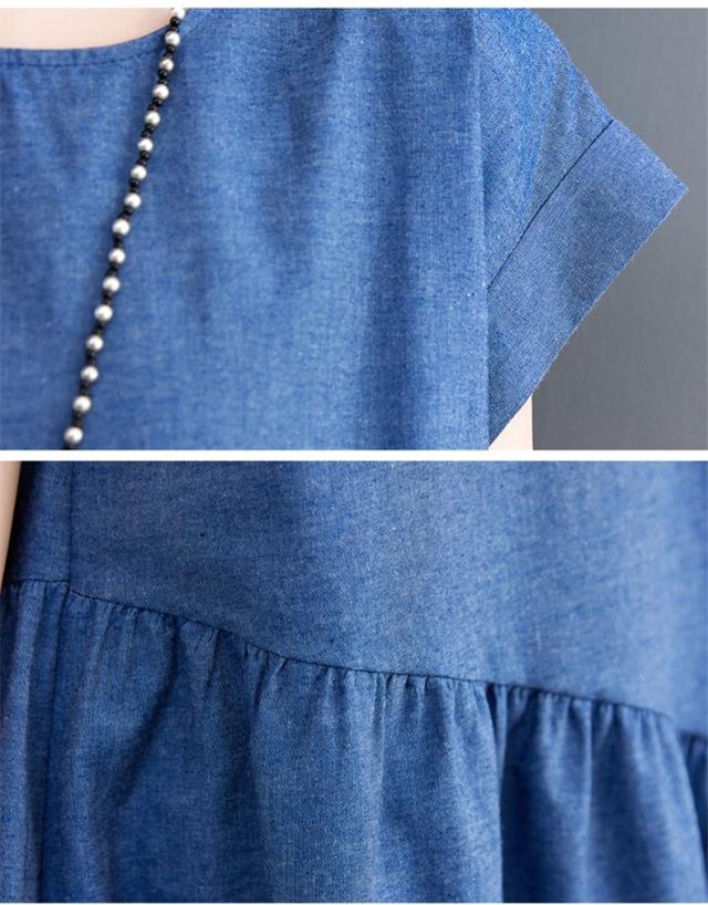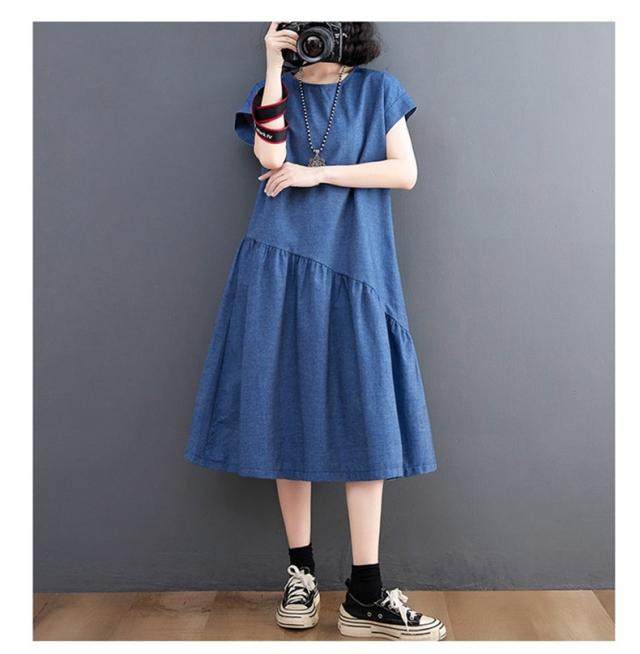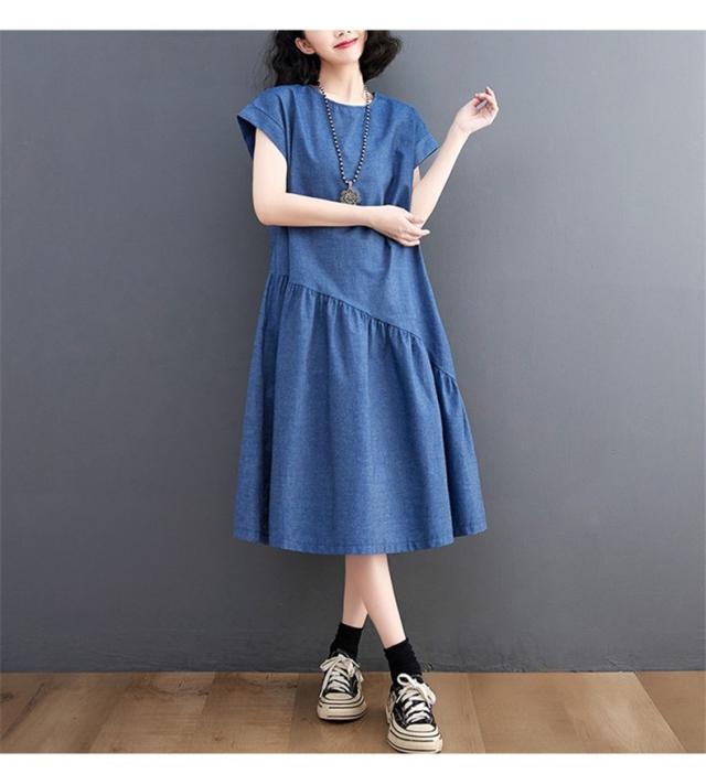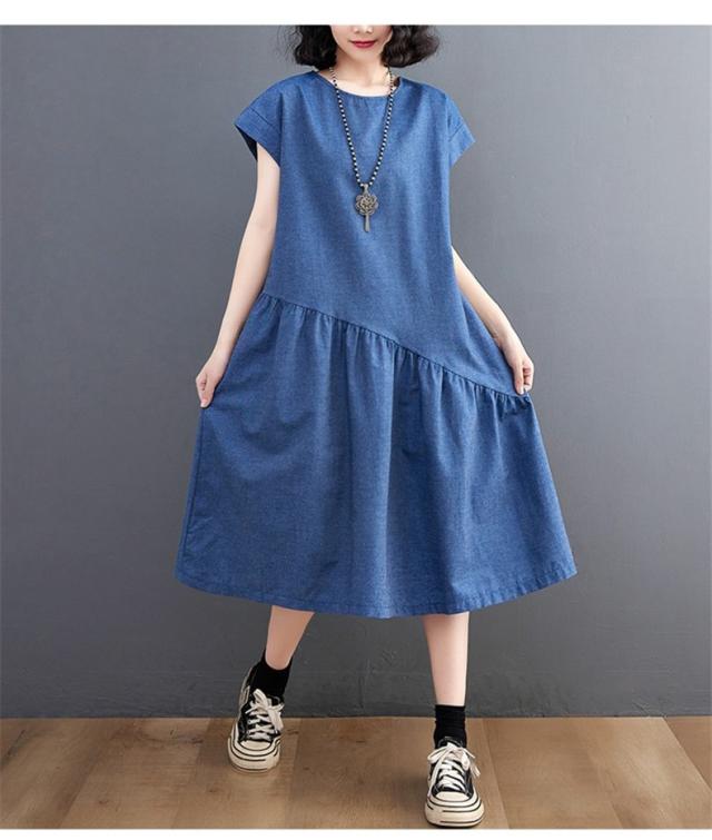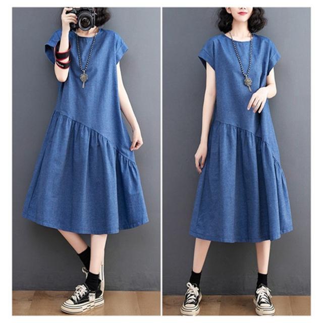 デニムワンピース レディース キレイめ 薄手 オシャレ フレア 着痩せ 大きいサイズ ゆったりとしたシルエット シンプル 絶妙な風合い