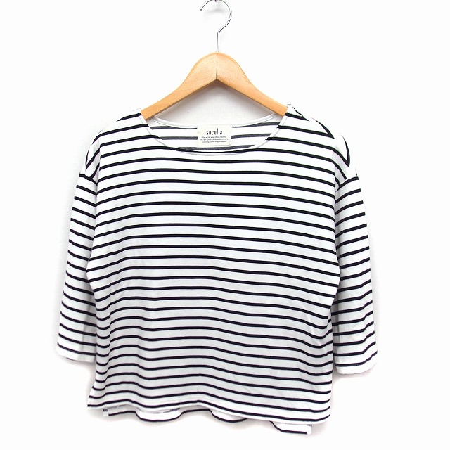 【中古】ソコラ socolla バスクシャツ カットソー Tシャツ 七分袖 ボーダー 綿 2 ホワイト 白 ブラック 黒 /FT19