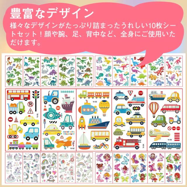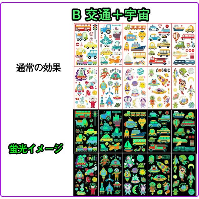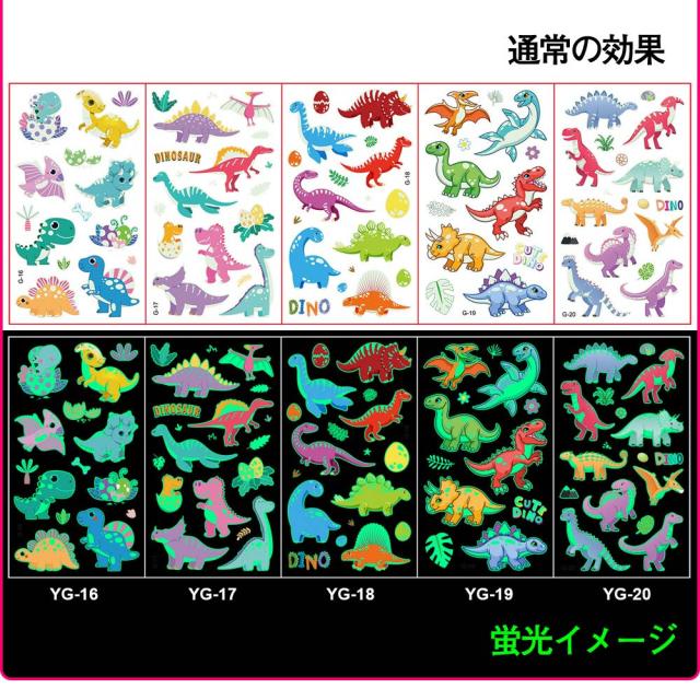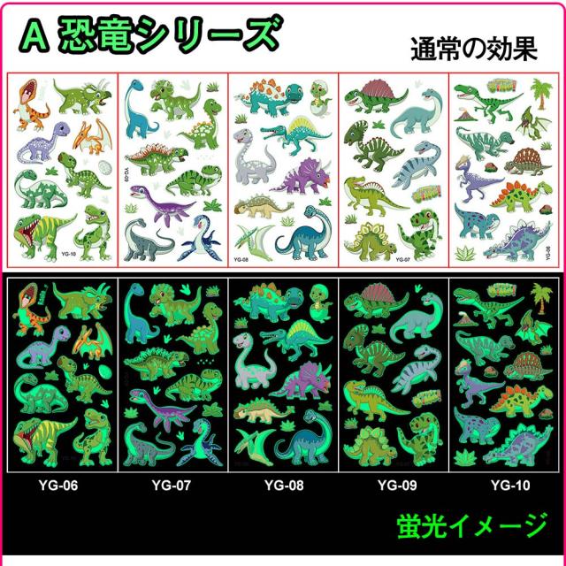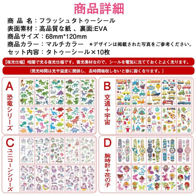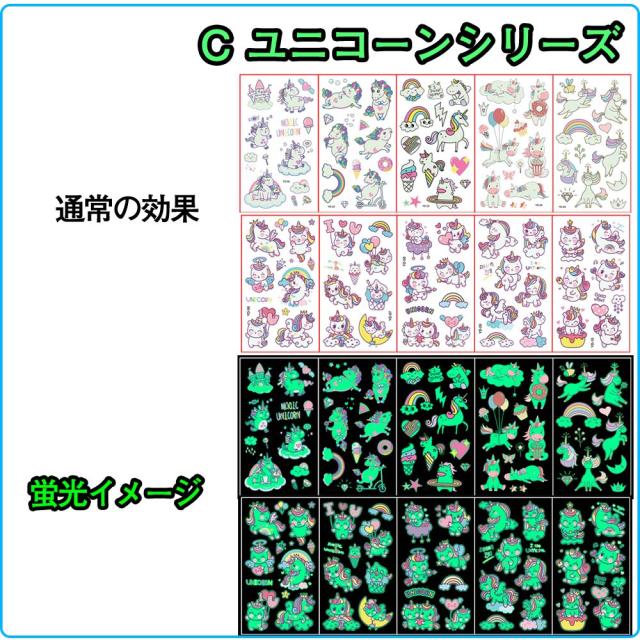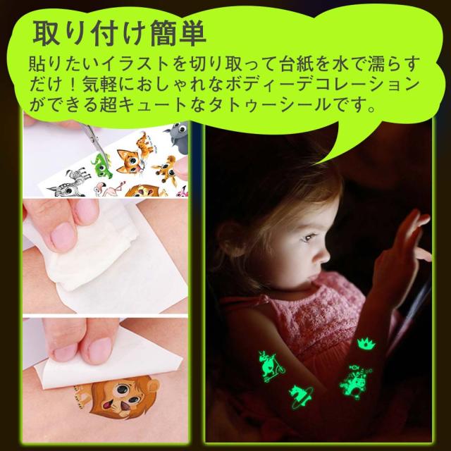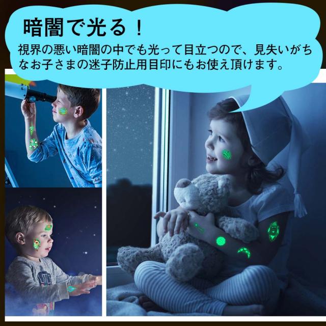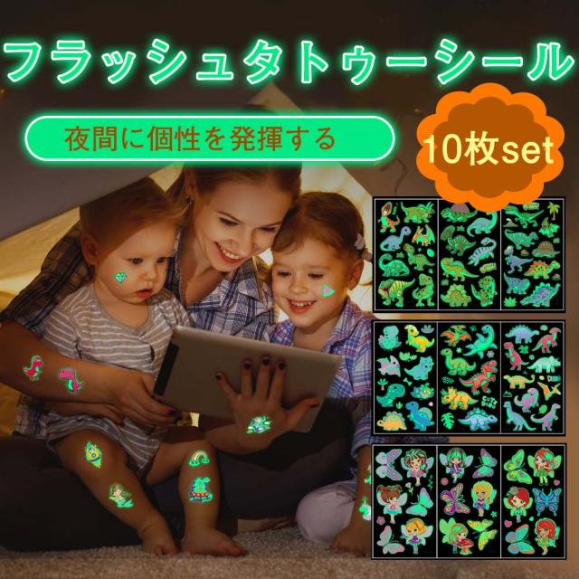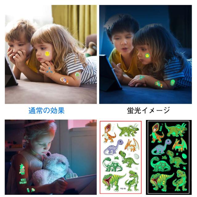 タトゥーシール 夜光 蛍光 子供 10枚セット 防水 迷子防止 かわいい ユニコーン 花の子 恐竜 動物 宇宙 ライブ パーティー イベント ハロウィン 夜 光る ボディーペイントシール キッズ