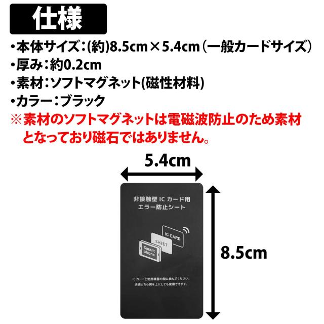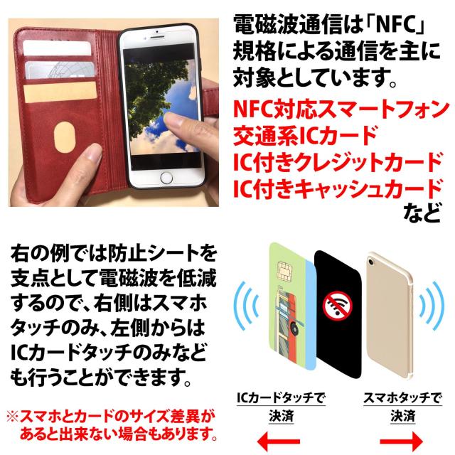 ・スマートフォンのサイズや電磁波通信(NFC)の強さによっては、シートを使用しても低減しきれない場合があります。その場合はICカードの収納場所を変えるなど調整をしてください。