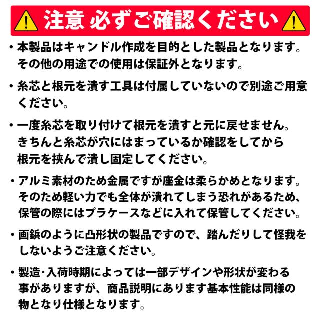 ・本製品はキャンドル作成を目的とした製品となります。その他の用途での使用は保証外となります。
