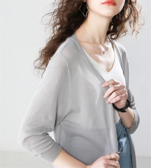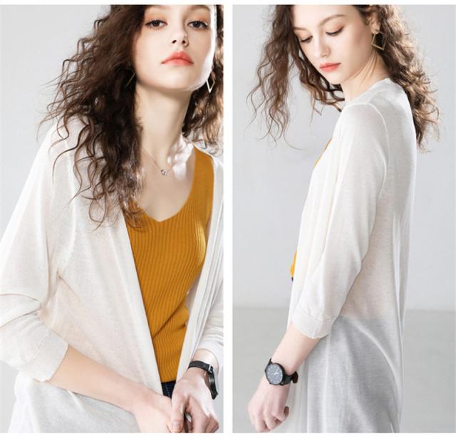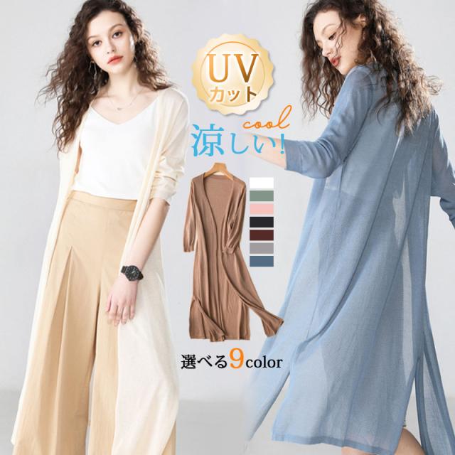 カーディガン 春夏 UVカット カットソー レディース トップス 前開き ロングカーディガン 無地 夏 羽織り 薄手 アウター U