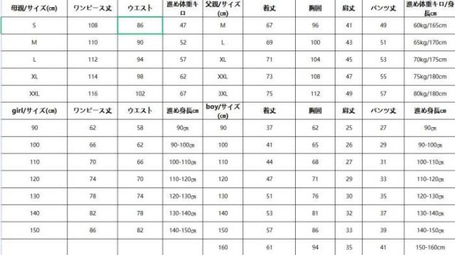 母親:S M L XL XXL