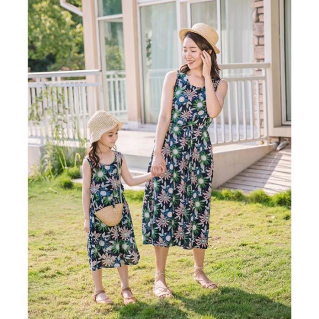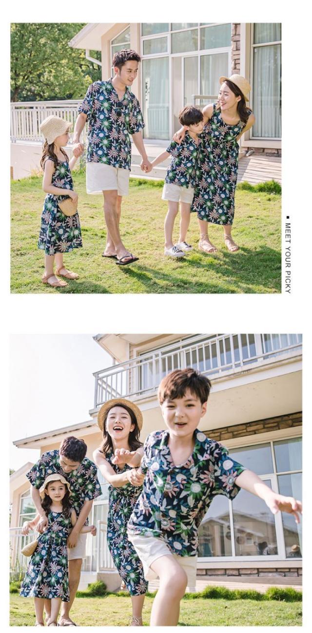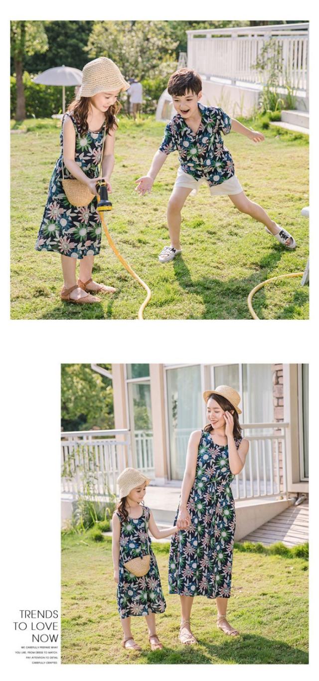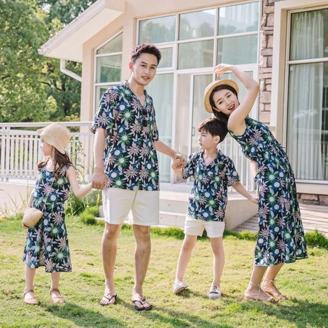 【父親/boyトップスのみ 】親子コーデ メンズ キッズ アロハシャツ 親子 リンク ペアルック 親子お揃い 母の日 親子ペア カップル服 花柄リゾートワンピース 上下セットアップ 夏 海