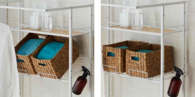 角度を変えられるバスケット台付き タオルや洗濯物の収納に便利
