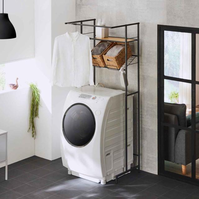 インテリアに馴染む木目調・マットな質感がスタイリッシュなデザインの洗濯機ラックです。