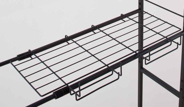 | 材質 | パイプ類・棚:鉄エポキシ樹脂粉体塗装 棚板:MDF 樹脂部品:PP樹脂 ねじ類:鉄・メッキ |