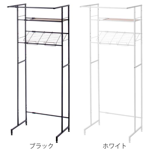 《 LH12206 サニタリー サニタリー用品 洗濯機上ラック 収納棚 収納ラック 省スペース ハンガーバー ハンガー ホワイト ブラック 白 黒 男前 ホワイトインテリア シンプル インダストリアル シェルフ 洗濯機シェルフ 脱衣所 自立式 タオル コンパクト ランドリーグッズ ランドリー用品 整理整頓 》