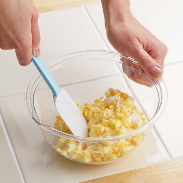 ガラスのように透明でありながら、落としても割れたりカケたりしにくい丈夫なボウルです。軽くて扱いやすく、食材もこぼれにくい深さがあるので、混ぜたり和えたりしやすいです。
