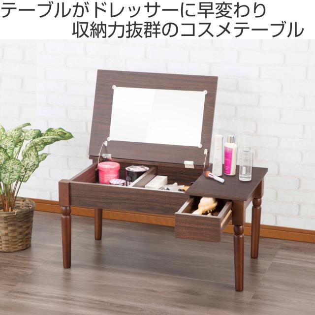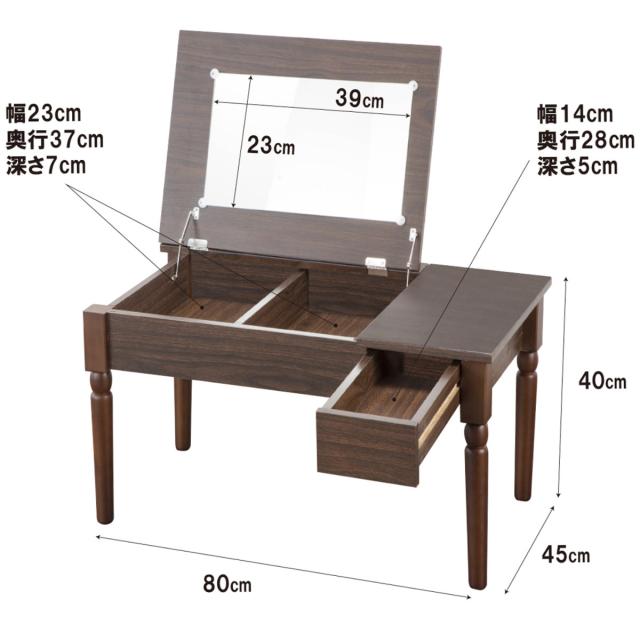 ローテーブル 幅80cm ドレッサー付き 収納 ( 鏡付き 化粧台 鏡台 テーブル コンパクト ロータイプ 木目調 リビングテーブル ミラー 引き出し 可愛い おしゃれ 完成品 )
