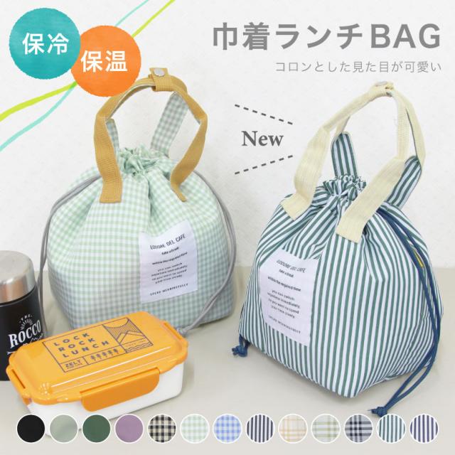 【メール便1枚のみ送料無料・ゆうパケット】保冷&保温 巾着型ランチバッグ おしゃれ かわいい チェック ストライプ 保冷 ギフト プレゼント【P】【M】