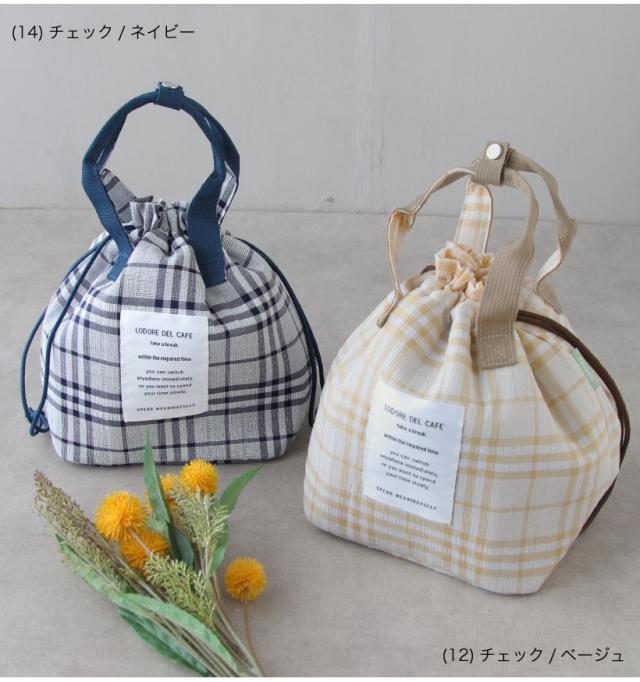 【メール便1枚のみ送料無料・ゆうパケット】保冷&保温 巾着型ランチバッグ おしゃれ かわいい チェック ストライプ 保冷 ギフト プレゼント【P】【M】