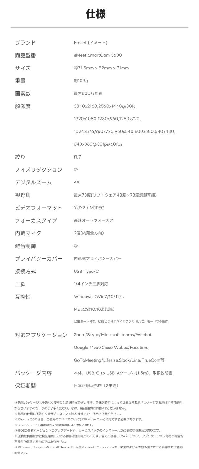 WEBカメラ EMEET s600