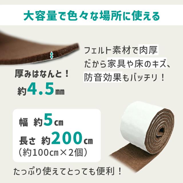 キズ防止テープ/傷防止/フェルト/2個セット/家具/フェルトテープ/4.5mm/テープ/カット/フローリング/傷防止テープ/キズ防止/セルフカット/シート/床ガード/フロアガード/フリーカット/クッション/クッションシート/家具フェルト/フェルトパッド/家具保護パッド/消音/汎用/椅子脚/足/騒音防止/防音/椅子脚カバー/保護パッド/テーブル/椅子/いす/ソファ/リビング/キッズルーム/子供部屋/寝室/新築/一人暮らし/賃貸/マンション/アパート/