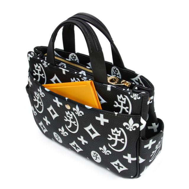 | モノグラムプリントを全面に施したドライビングトートバッグ カステルバジャックのモノグラムを大胆にプリントした、ショルダーバッグです。"ちょい派手"をイメージした大人の遊び心あるデザインに仕上げました。 メインルームには500mlペットボトルが縦向きに、長財布が横向きにすっぽりと収まるサイズ感になっています。細かいポケット類が豊富に備わっているので小物も分けて収納できます。 レザーライクなPVC 本体素材には、丈夫で水や汚れに強いポリ塩化ビニルを使用しています。レザーライクで高級感を演出しており、比較的軽量に仕上げています。 【限定カラー”ブルー”】 ショルダーバッグに新色"ブルー"が数量限定で登場しました。本体カラーのクロに、モノグラムカラーをブルーにすることでちょい派手ながらも落ち着いた大人な雰囲気に仕上げています。 |