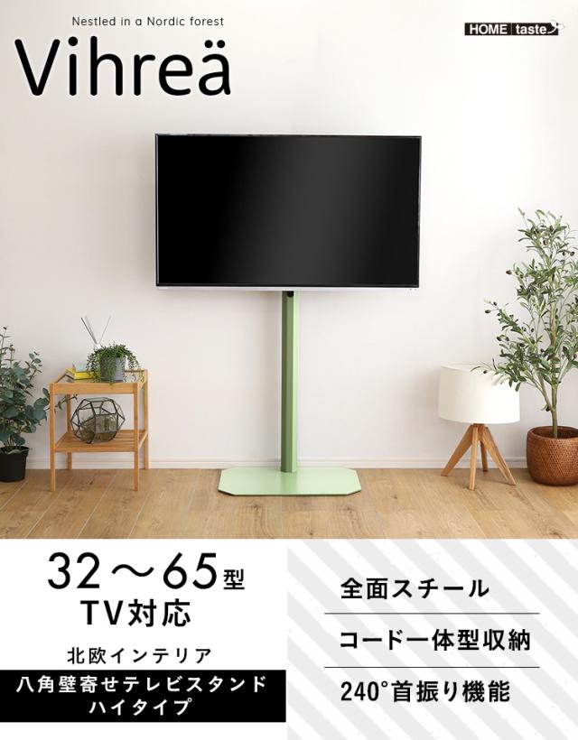 北欧インテリアの八角壁寄せテレビスタンドハイタイプ 32〜65インチ対応です!