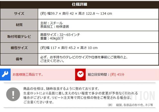 【商品サイズ】W約59.7xD約42xH約122.8-134cm