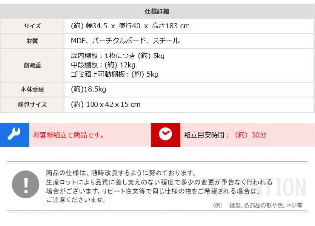 【商品サイズ】W34xD40xH183(cm)