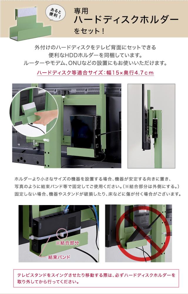 HDDホルダーはテレビスタンドの背面に引っかけるだけで簡単に設置できます!
